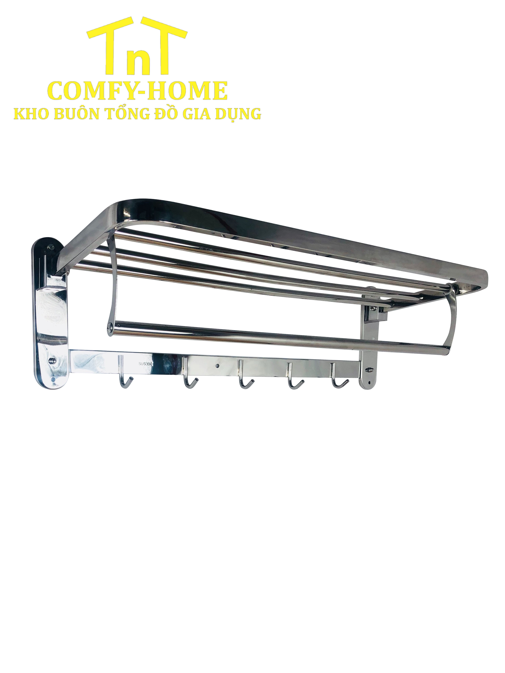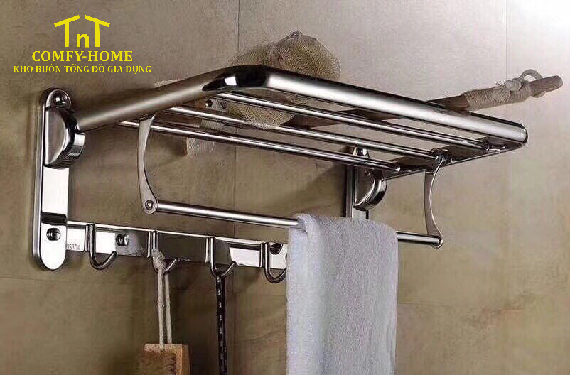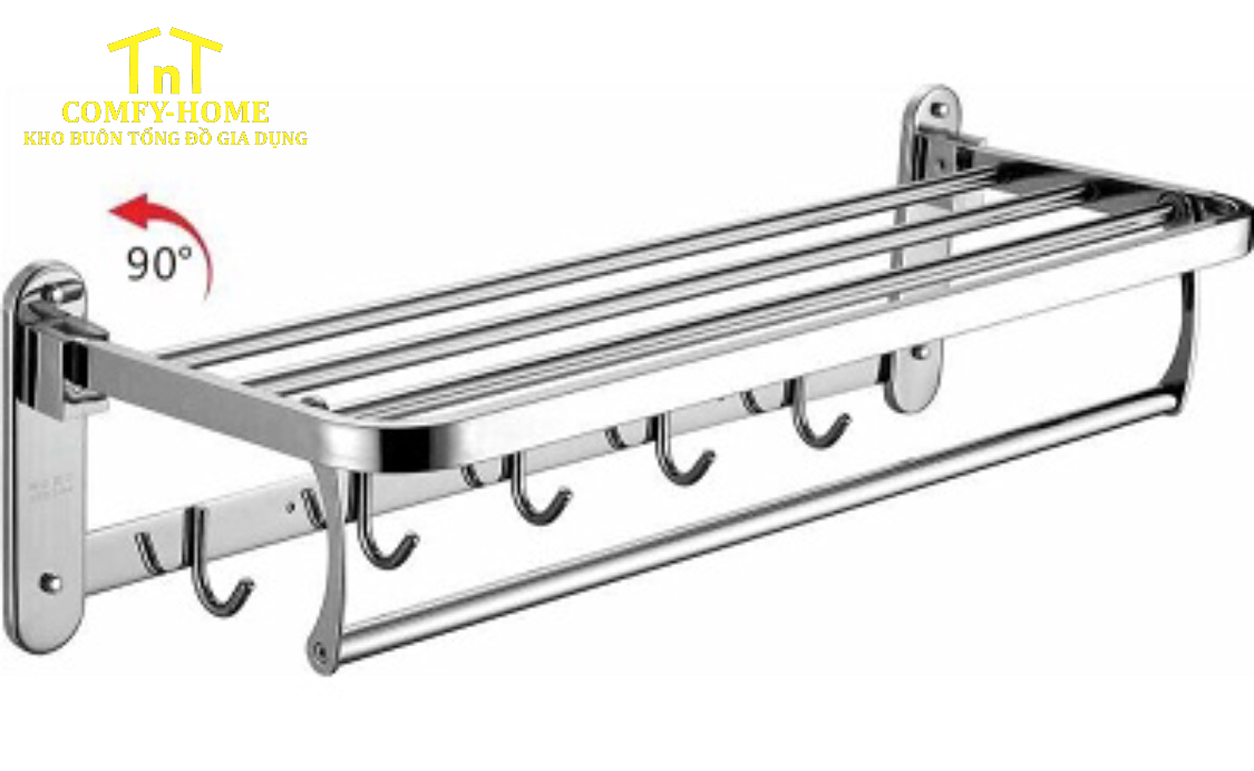Kệ vắt khăn đa năng Comfy Home – Thiết kế thông minh 3-trong-1: Xếp khăn khô, treo khăn ướt và móc treo phụ kiện. Chất liệu Inox 304/Hợp kim nhôm chống gỉ sét tuyệt đối, thiết kế giàn gập 90 độ giúp tiết kiệm tối đa diện tích. Giải pháp hoàn hảo cho phòng tắm hiện đại, luôn khô thoáng và gọn gàng.
